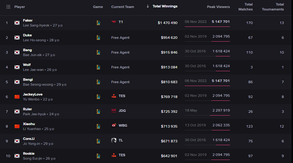 | Gen.G | 764,498 | 410,621 |