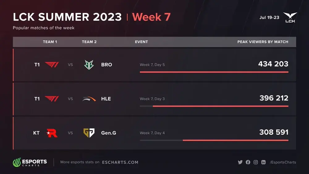 LCK Summer 2023 - LoL - Viewership, Overview, Prize Pool | Esports Charts