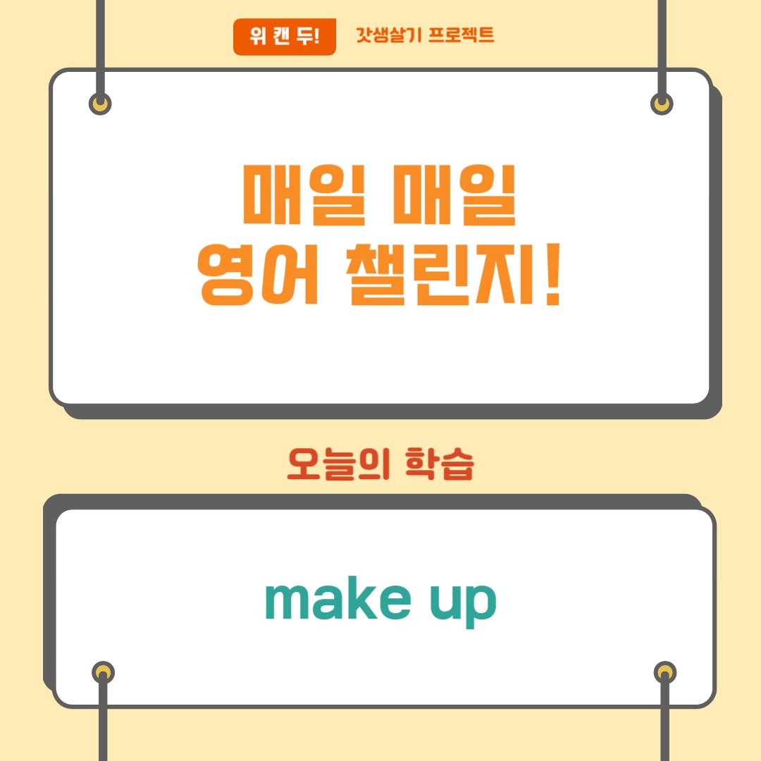 안녕하세요 오늘은 make up' 에 대해서 얘기해볼게요. 메이크업 아니냐구요? 그건 'makeup' 으로 한 단어고, 이 구동사는 'make' 와 'up' 이 합쳐져서 만들어진 거랍니다.