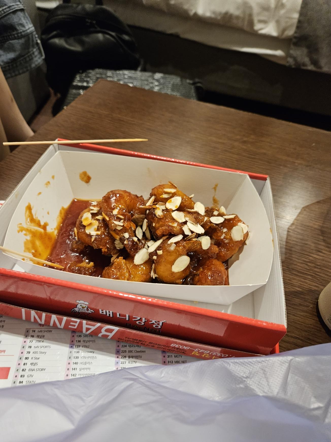 맥주랑 새우강정? 으로 야식 먹고 취침. 새우강정은 파시는 아주머니가 따뜻하게 먹는 게 아니라면서 그냥 주더라구요. 맞나 싶지만 못 먹을 정돈 또 아니기도 하고.. 예상된 맛이긴 합니다 ㅎㅎ