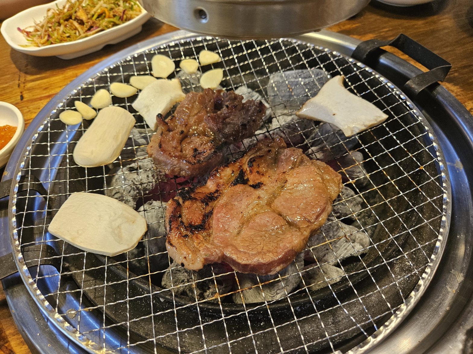 여긴 유명한 식당이라고 하더라구요. 친구의 강추로 가게 되었습니다. 양지말 화루구인데요. 간장 구이는 목살이고 고추장 구이는 삼겹살로 만드는 것 같습니다. 허겁지겁 먹느라 막국수랑 양푼이 비빔밥은 못 찍었는데요. 그것들도 맛있어요~
