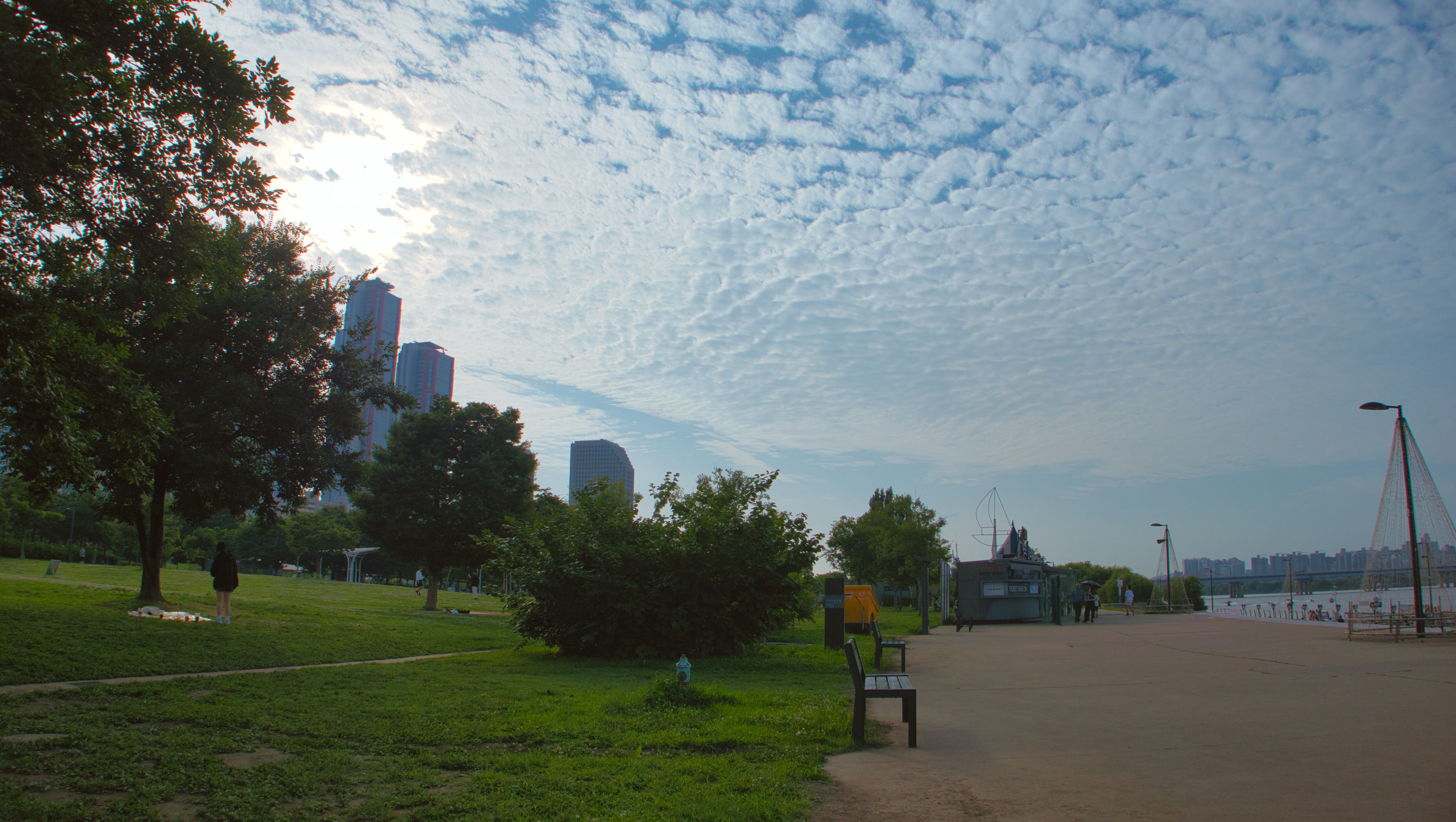 이 시간대에는 해가 없는 구름이 더 푸르죠 확실히. 한 5시였던 것 같아요 요즘 해가 길어서 6시반 쯤 찍으면 붉게 이뻤을 것 같은데